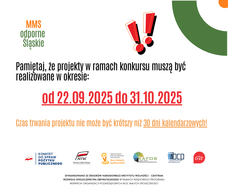 Projekt sfinansowano ze środków Narodowy Instytut Wolności – Centrum Rozwoju Społeczeństwa Obywatelskiego w ramach Rządowego Programu Wsparcia Organizacji Pozarządowych Moc Małych Społeczności
